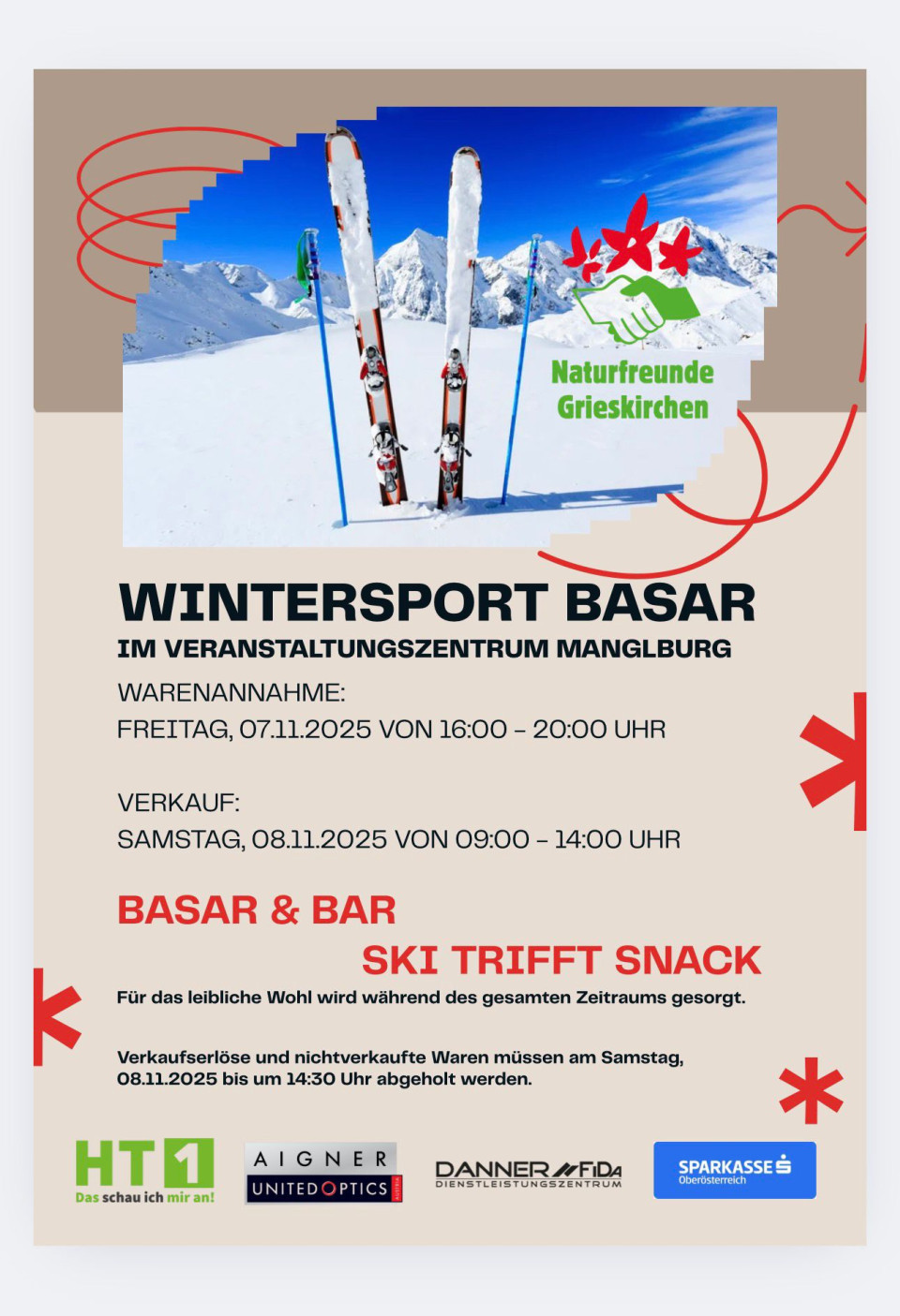 Verkaufen, kaufen, stöbern oder einfach in gemütlicher Atmosphäre plaudern – unser Basar mit Bar bietet die perfekte Gelegenheit, gut erhaltene Wintersportartikel weiterzugeben und dabei echte Schnäppchen zu machen.